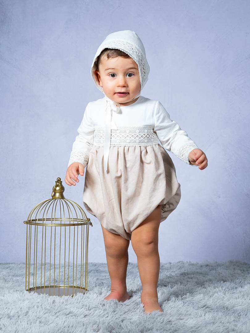 Pelele lino guipur con capota – Ref. B3921 y B3921-ML
